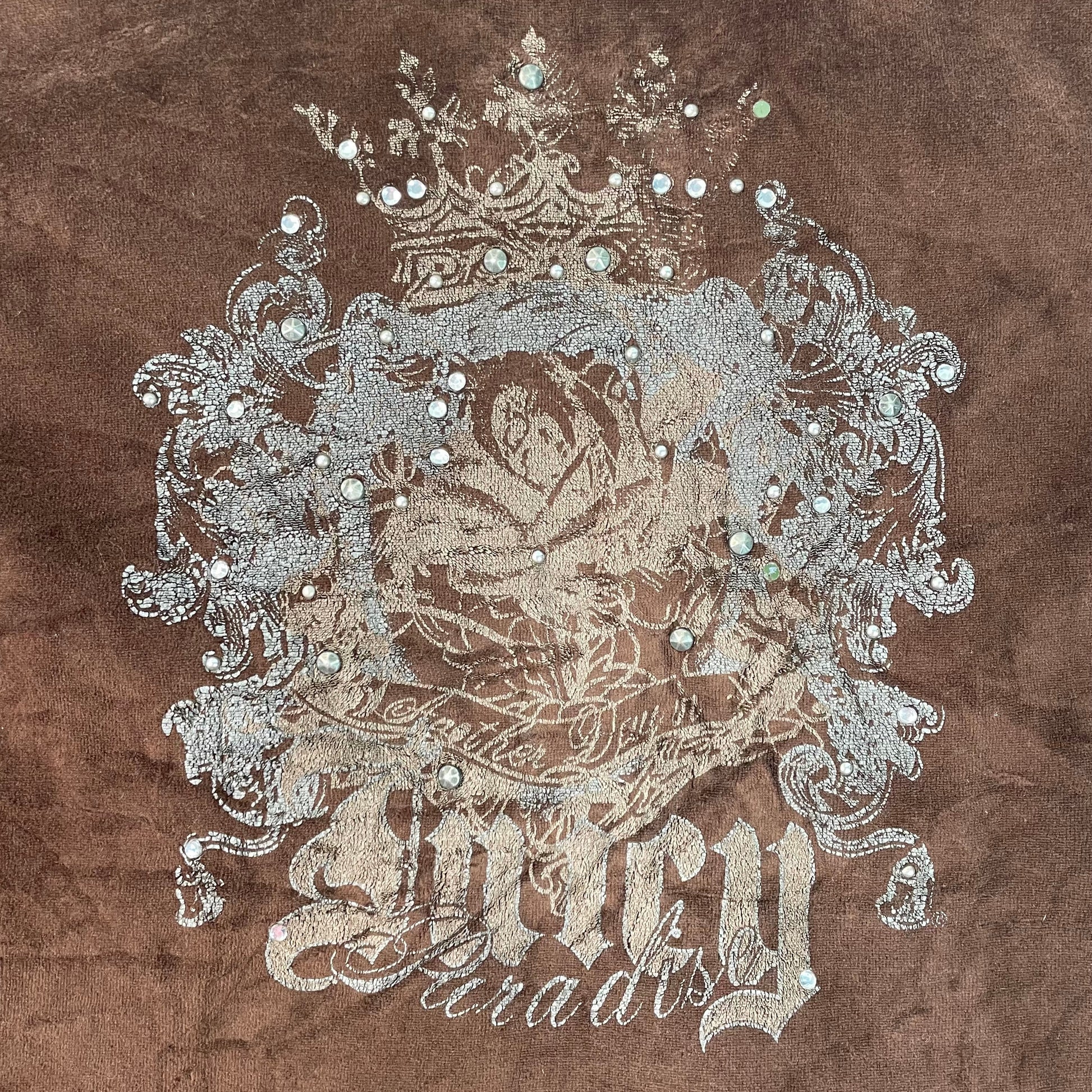 Authentic Y2K Juicy Couture USA Brown Velour Rhinestone Hoodie | Best Fit UK 10-12