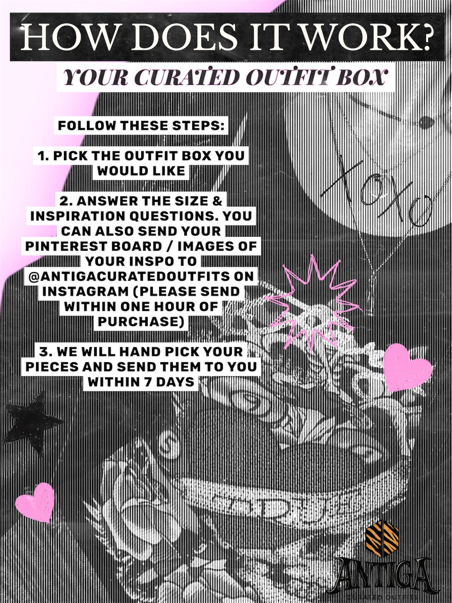 When purchasing an outfit box, please note that if you wish to return it; since these items are sold as curated outfits, the entire outfit must be returned in order for the return to be accepted.