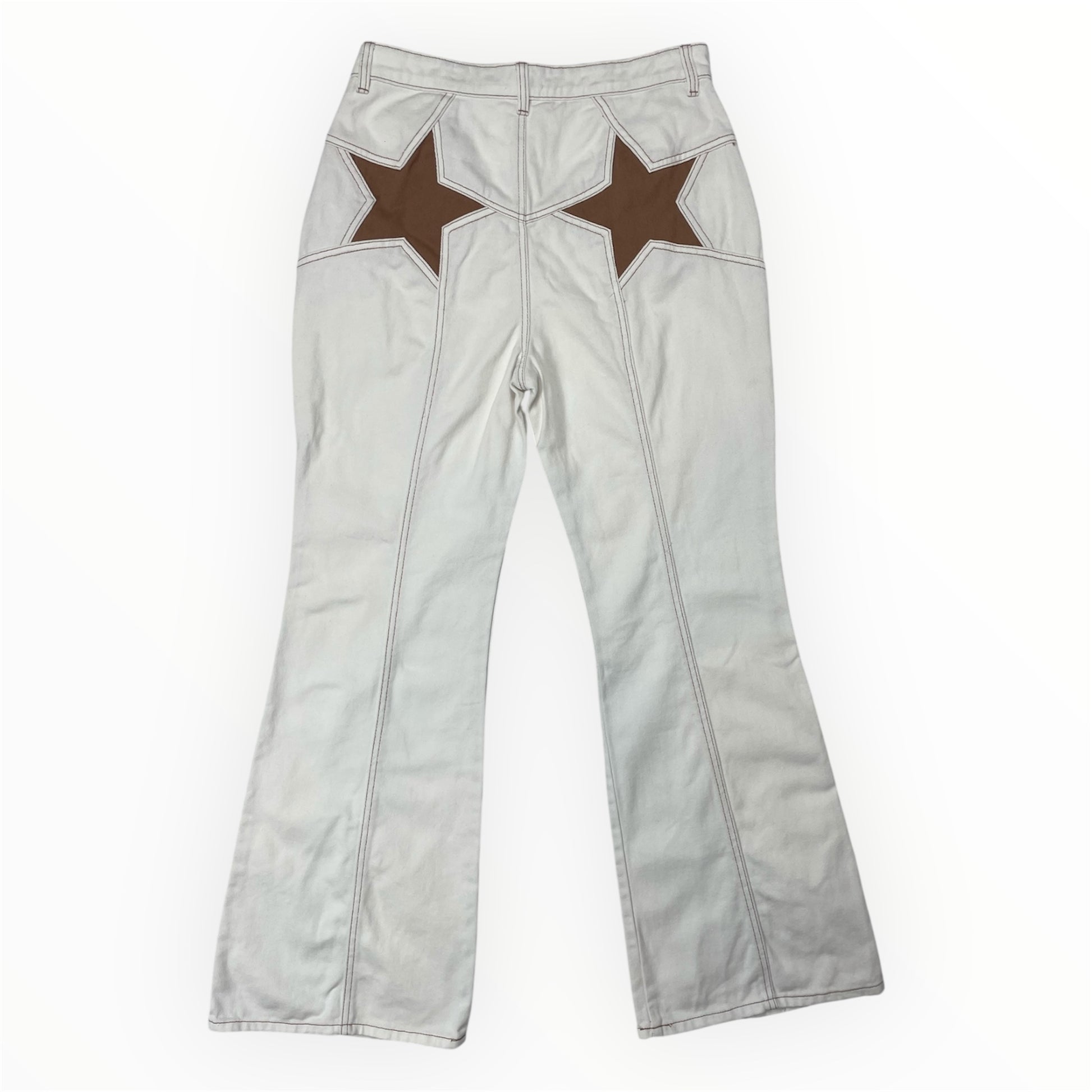 Tezenis Y2K Star Patch Flared Trousers – White/Brown - W31 / UK 12