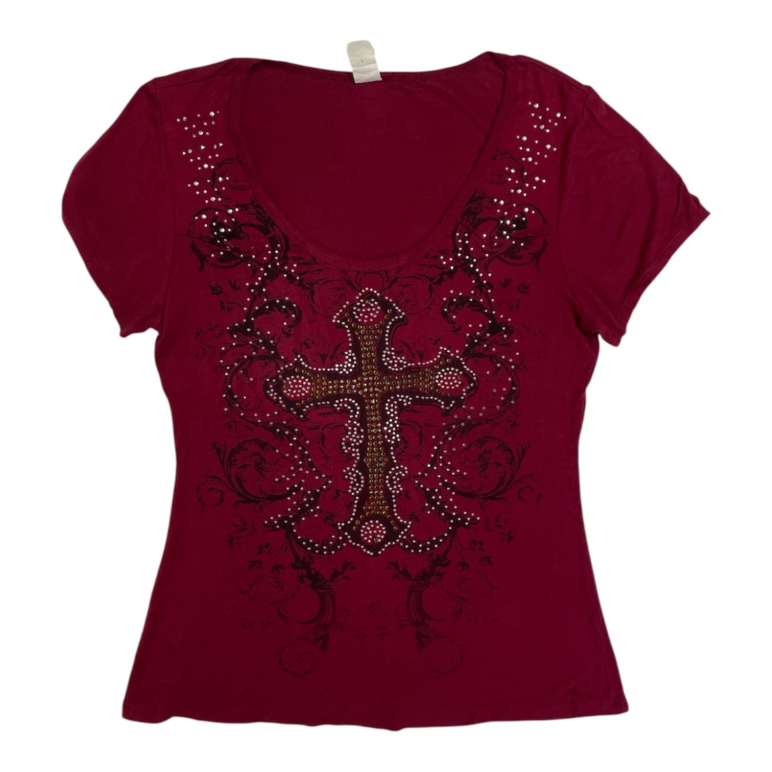Vintage Y2K Liberty Wear Rhinestone Cross Tee | Best Fit UK 12-14